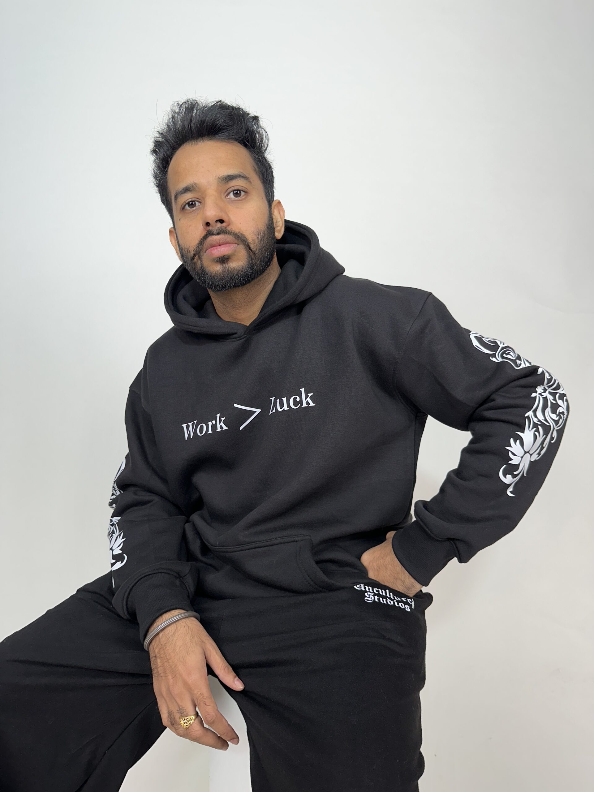 The WORK > LUCK Black Hoodie from Uncultured Studios represents a mindset — showing up, putting in the work, and trusting the process. Designed for everyday wear, this hoodie features the statement “WORK > LUCK” printed across the chest, with additional graphic details running along the sleeves and back for a strong streetwear presence.
